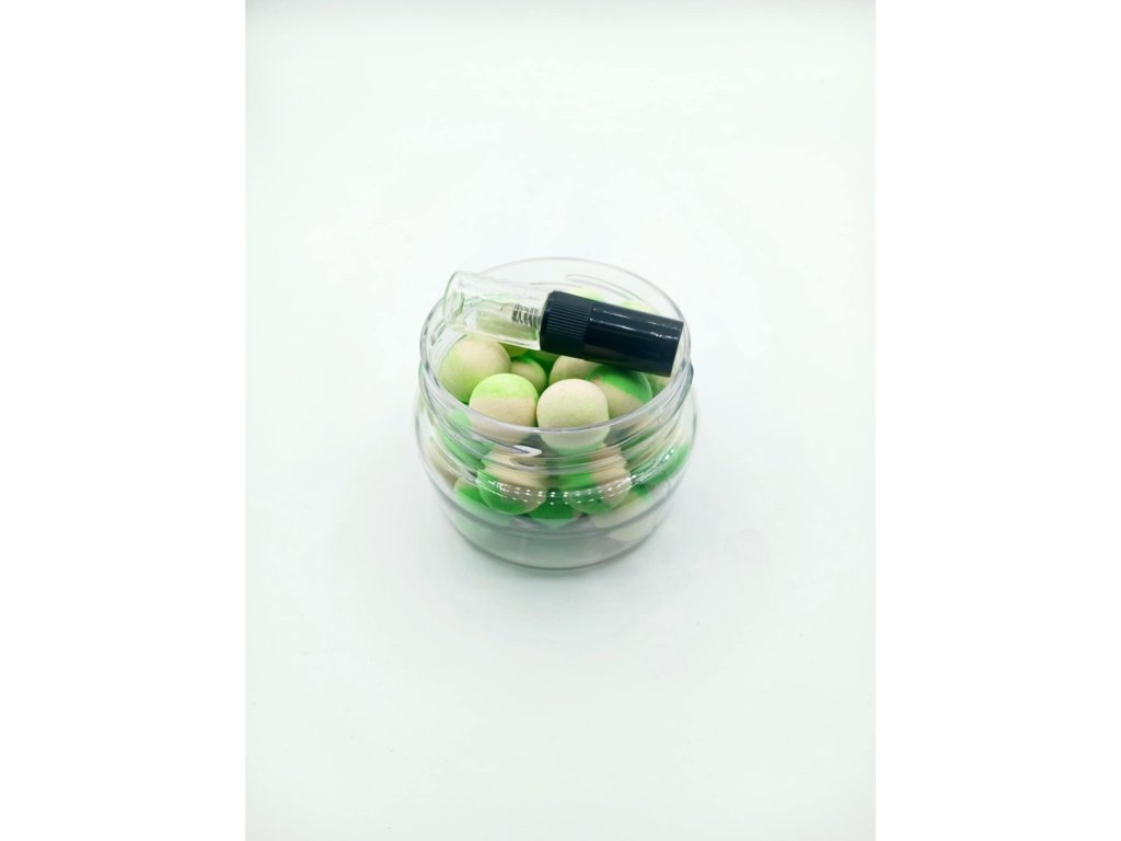 Kvalitně vyrobené plovoucí (POP-UP) boilies, které se vyznačují především svoji kvalitou zpracování .Při výrobě je použita kvalitní směs a kvalitní esence. To zaručuje, že ve vodě vydrží i několik dní, neztratí aroma a ani se nerozpustí. Esence se přidává již při míchání těsta , POP-UP je tedy provoněná celá(nejedná se jen o navoněné neutrálky), proto vydrží vonět několik měsíců.