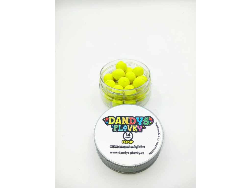 Plovoucí POP-UP boilies Dandys plovky vyrobené z kvalitní esence a směsí. Jsou vhodné do každého počasí a ročního období. Na výběr je z velkého množství barev (fluo barvy) a příchutí, aroma vydrží několik měsíců a ve vodě vydrží boilies i několik dní.