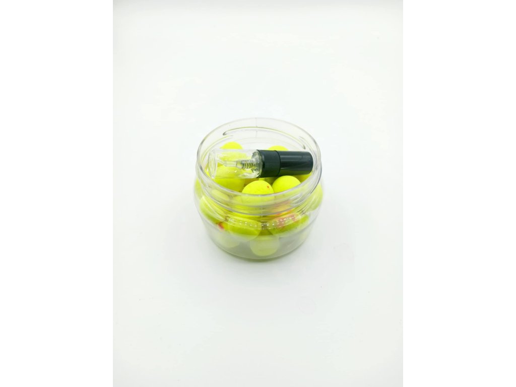 Ananas+, jedna z nejoblíbenějších příchutí mezi rybáři.Kvalitně vyrobené plovoucí (POP-UP) boilies, s extra dávkou sladidel.Kuličky krásně a dlouho voní a jsou oproti jiným výrobcům extra sladké.Při výrobě je použita kvalitní směs a kvalitní esence. To zaručuje, že ve vodě vydrží i několik dní, neztratí aroma a ani se nerozpustí. Esence se přidává již při míchání těsta , POP-UP je tedy provoněná celá(nejedná se jen o navoněné neutrálky), proto vydrží vonět několik měsíců.